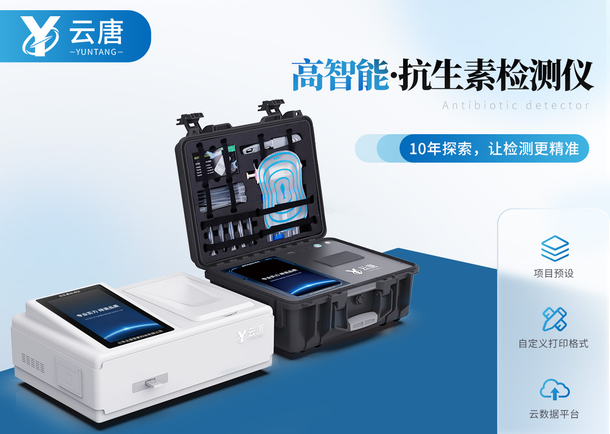 山東云唐智能科技有限公司生產(chǎn)的抗生素殘留檢測儀可現(xiàn)場快速檢測抗生素類殘留、獸藥殘留、激素類殘留、毒素類殘留,化學(xué)類殘留等多種項目,如可快速檢測四環(huán)素類、硝基呋喃類、磺胺類、沙星類、喹諾酮類、氯霉素、慶大霉素、鏈霉素、喹乙醇代謝物、硫酸鏈霉素、羧芐青霉素、噻孢菌素鈉、阿莫西林、氨芐西林、紅霉素、潮霉素B、安普霉紊、桿菌肽等抗生素快速檢測;還可檢測激素類:鹽酸克倫特羅、沙丁胺醇、萊克多巴胺、己烯雌酚等,水產(chǎn)獸藥:呋喃妥因代謝、呋喃西林代謝、呋喃它酮代謝、呋喃唑酮代謝、孔雀石綠等,毒素類:黃曲酶毒素B1、嘔吐毒素、玉米赤霉烯酮、赭曲霉毒素A等,化學(xué)類藥物:氨丙琳、甲基吡啶磷、阿滅丁、雙甲脒、阿散酸、阿維菌素、氮哌酮、芐青霉家、頭孢噻呋、克拉維酸、氯羥吡啶等項目。